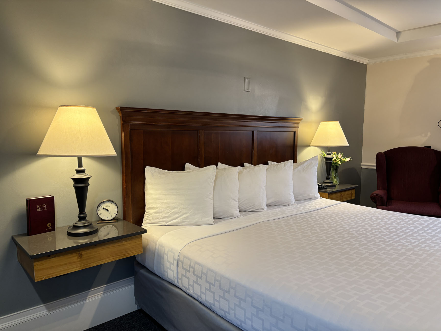 Our front office, guest rooms, and ice machine room have a lip and/or step(s) at the entrance. There are no roll-in showers in any of the rooms. There are rooms available on the first and second floors. Please note, that the second floor is only accessed by stairwells, and there is no elevator on the property. We have three guest rooms available on the first floor (lip and/or step to enter room) that have grab bars in the bathrooms. There is a shower/tub combination in these rooms. Parking is not assigned. If you need one of these more specific rooms, please call the Front Desk at 570-724-3424, and we will be happy to double-check availability.